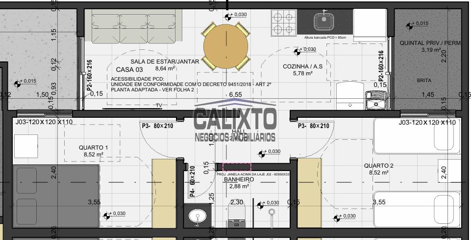 Casas em excelente localização, com até 45m2 distribuídos em 2 quartos, cozinha americana, sala de estar, banho social e área de serviço. 1 vaga;